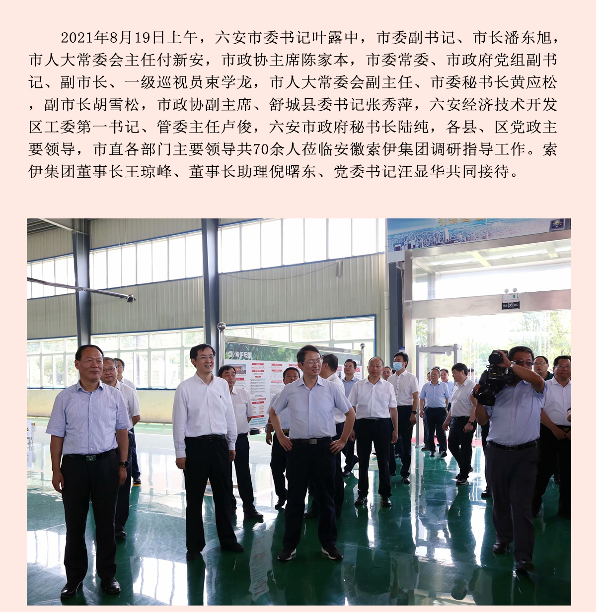 六安市四大班子領導蒞臨索伊集團調研指導工作