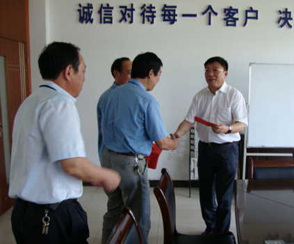 “希望索伊電器所有的黨員在公司黨總支的帶領下,起到先鋒黨員帶頭作用,積極為公司建設和開發區發展做出貢獻。在建黨90周年即將到來之際,我們代表六安市開發區祝你們身體健康!生活幸福!”開發區工委書記周耀向三位老黨員送去最誠摯的問候和慰問金,并親切的詢問了他們的生活和工作情況。