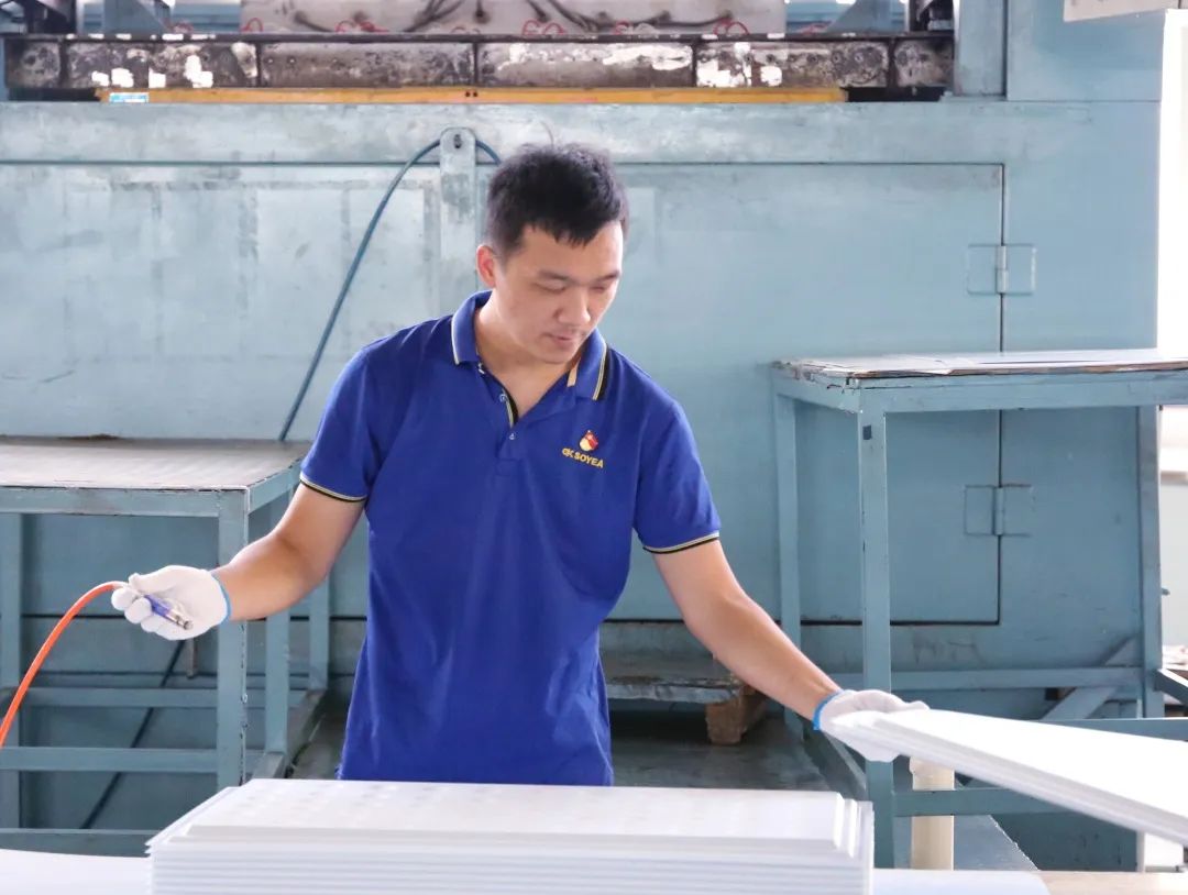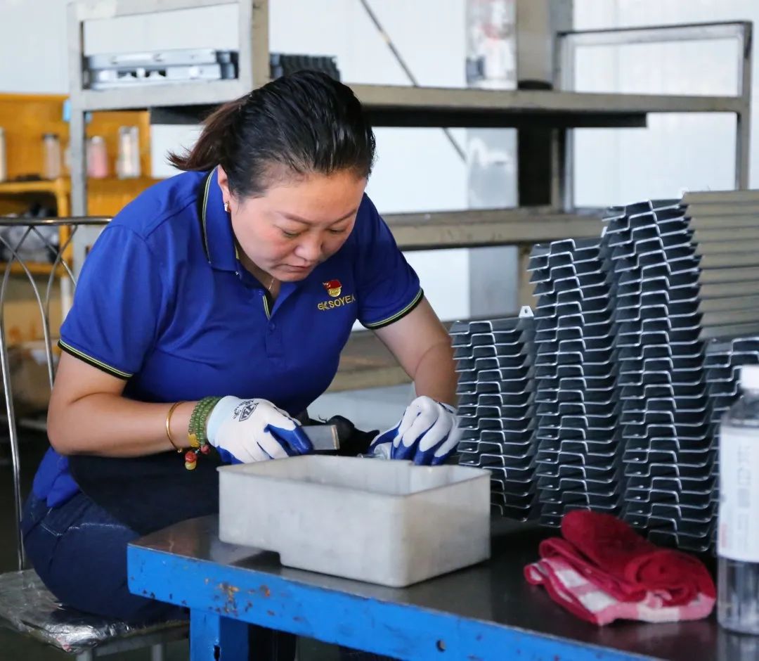 8月13日,共計有四個車間的32個崗位需要支援,上午六點半,由公司黨委書記、公司副總、公司財務總監及廣大科室干部共計首批33人來到生產車間。服從車間安排,哪里需要哪里上,有的是第一次參加義務勞動,員工師傅們手把手的教,管理干部們認真學習,傾聽講解,很快掌握要領。有的崗位雖然有難度系數,但邊學邊干,不懂就問,與一線員工們在一起工作,體驗他們的辛苦,感受他們的勤勞,收獲同甘共苦的快樂。汗水浸透著索伊藍的工裝,但大家的干勁不減,依然是揮汗如雨戰高溫,保質保量保訂單,與企業同呼吸,共命運。