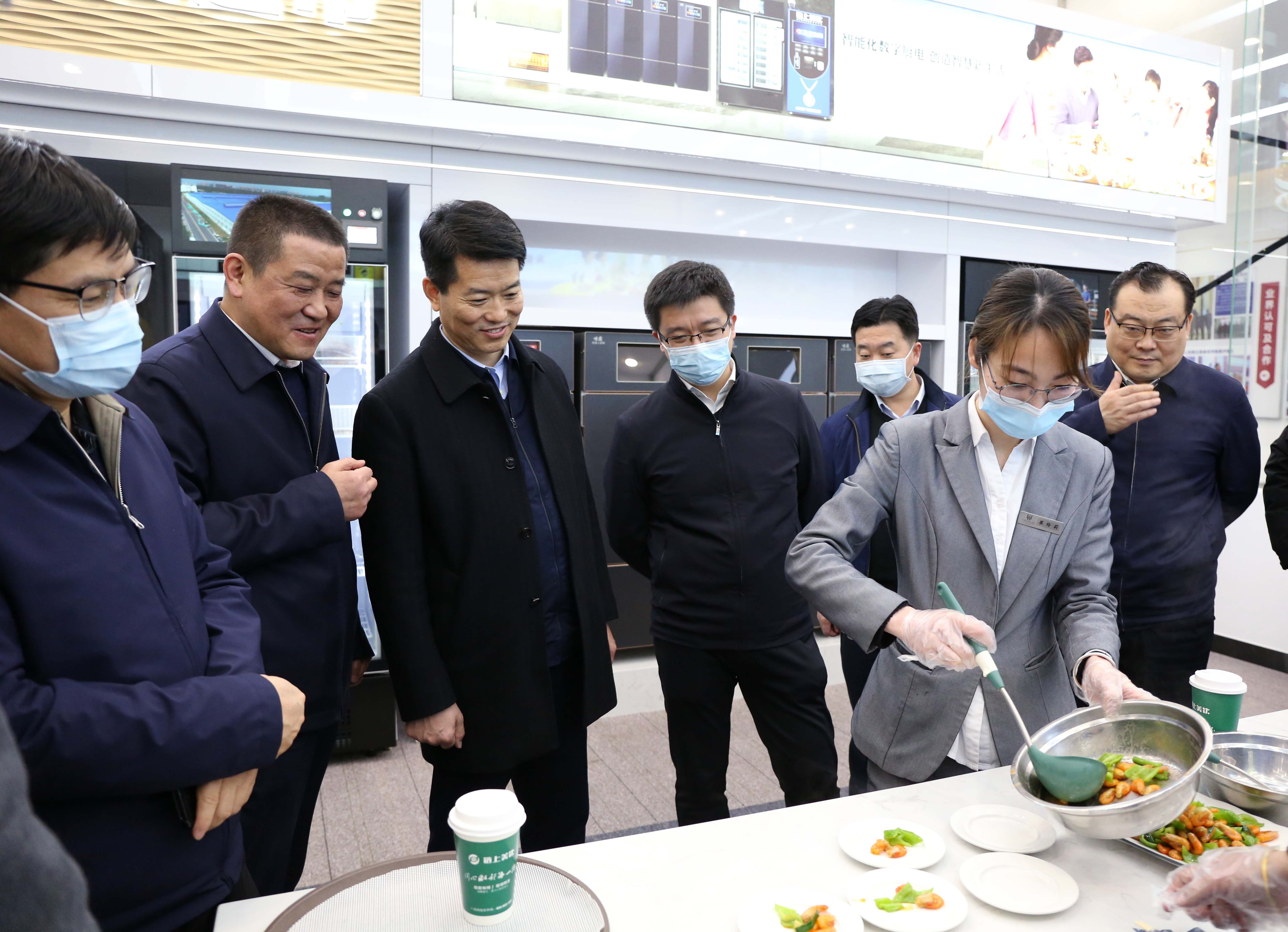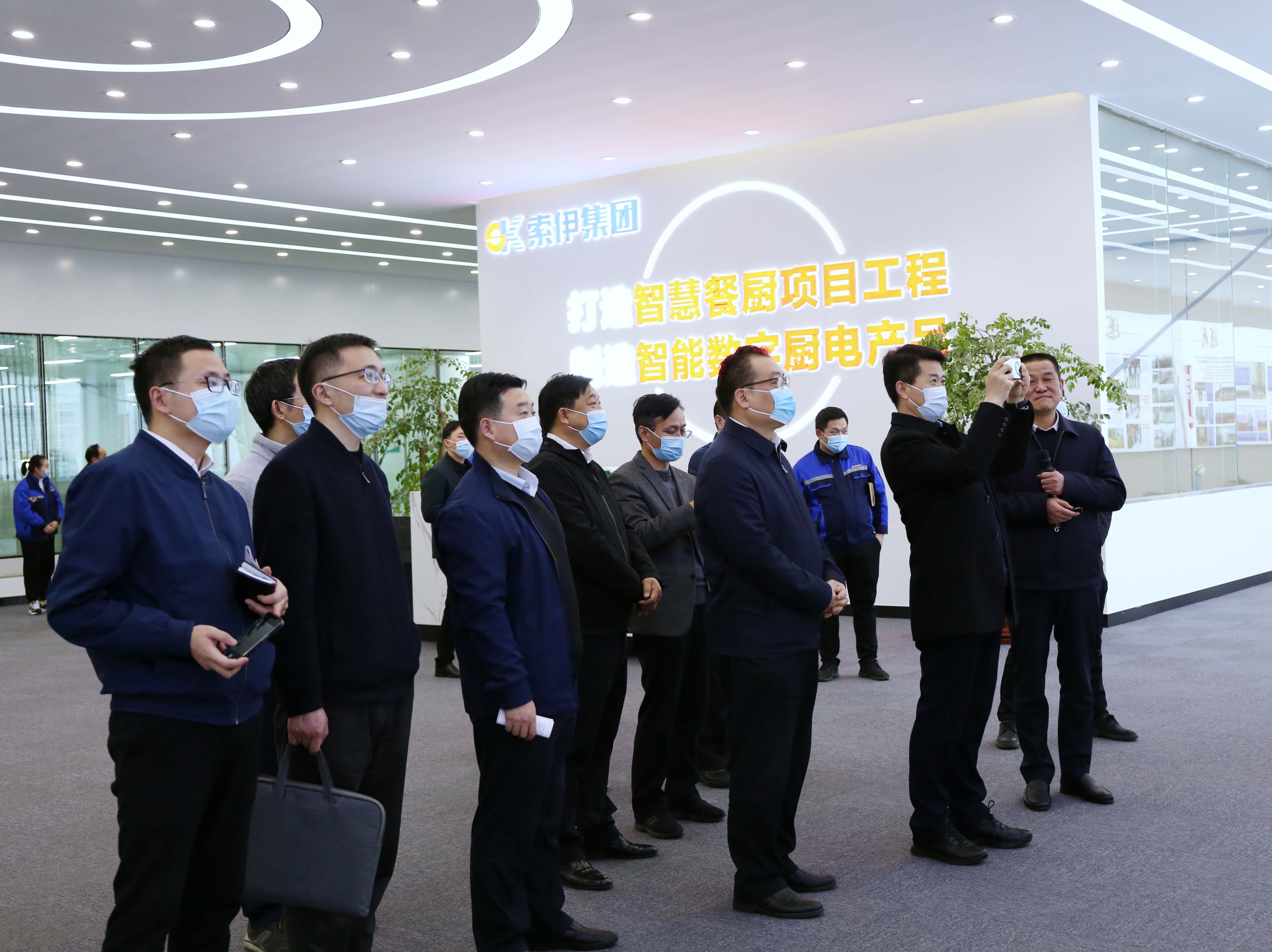 接著各位領導來到集團轉型展示廳,王董事長向大家介紹了索伊集團的發展歷程,以及企業如何走轉型升級之路,通過多年的探索,最終確定以“智慧餐廚項目工程”為核心的發展方向,以“智能化數字廚電新產品”研發、制造和應用為核心的智能化數字化產業集群。創造性提煉出了二十一世紀餐飲行業發展的“八化”趨勢,即“餐飲品牌化、廚房中央化、消費智能化、應用廣泛化、品質一致化、品種多元化、食安溯源化、運營標準化”。張省長聽了覺得很有創意,也非常有道理,高興地拿出手機拍下了“八化”的內容。并對索伊集團的戰略眼光,超前思維,精辟總結大為贊賞。更對索伊集團把錢學森在1995年提出的“烹飪工業化將出現在21世紀中國的第六次產業革命中”這一偉大構想,變成現實給予點贊。張省聽取了王瓊峰董事長的匯報后,對索伊集團的智慧餐廚項目工程給予充分的肯定。