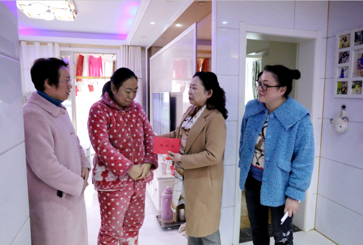 2021年2月22日六安開發(fā)區(qū)婦聯(lián)主席李學勤、索伊婦聯(lián)主席汪顯華為索伊尿毒癥患者王昌言送去慰問金并鼓勵她要以堅強的信心戰(zhàn)勝病痛。