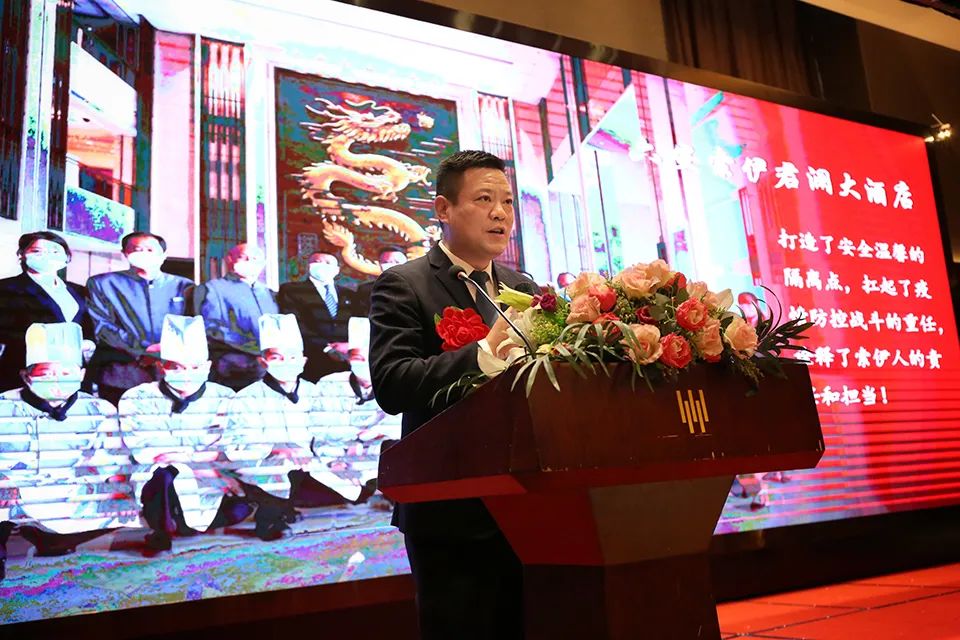 會(huì)上,全體參會(huì)人員共同觀看了索伊集團(tuán)抗疫專(zhuān)題宣傳片《“疫”路風(fēng)雨 “伊”路有你》;董事長(zhǎng)助理倪曙東宣讀了安徽索伊集團(tuán)表彰文件;云餐智慧物聯(lián)科技有限公司總經(jīng)理孫玉勝、索伊君瀾大酒店總經(jīng)理張雷分別代表先進(jìn)集體上臺(tái)發(fā)言,索伊電器制造有限公司安環(huán)處處長(zhǎng)張嘯、索伊君瀾大酒店智廚主管戚玲代表先進(jìn)個(gè)人上臺(tái)發(fā)言。集團(tuán)領(lǐng)導(dǎo)和部門(mén)領(lǐng)導(dǎo)先后為3個(gè)先進(jìn)集體和17位先進(jìn)個(gè)人進(jìn)行現(xiàn)場(chǎng)頒獎(jiǎng)。